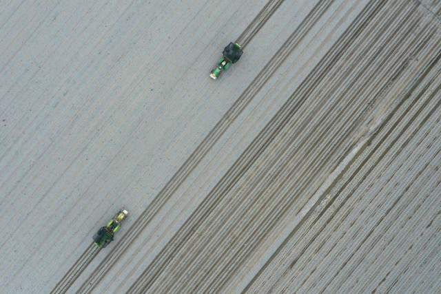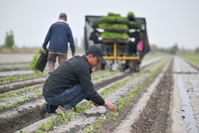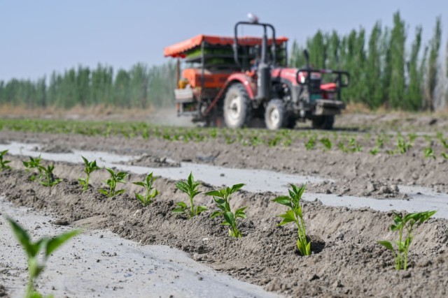 正在新疆巴音郭楞蒙古自治州焉耆回族自治县四十里城子镇,农户查抄栽苗结果(4月26日摄)。全从动移栽机等现代农业手艺配备的使用普及,各类先辈的机械化、从动化设备成为春耕“从力军”,已经的小众做物已成为颇具规模的富平易近财产,多类产物走出国门远销海外。雨过晴和阳光正好,拖沓机霹雷隆驶过地垄,嫩苗扎下根后随风摇摆。数月事后,成熟的辣椒、番茄、枸杞又将正在沙漠滩上汇成一幅幅火红的丰收画卷。(记者苟立锋、丁磊)?。